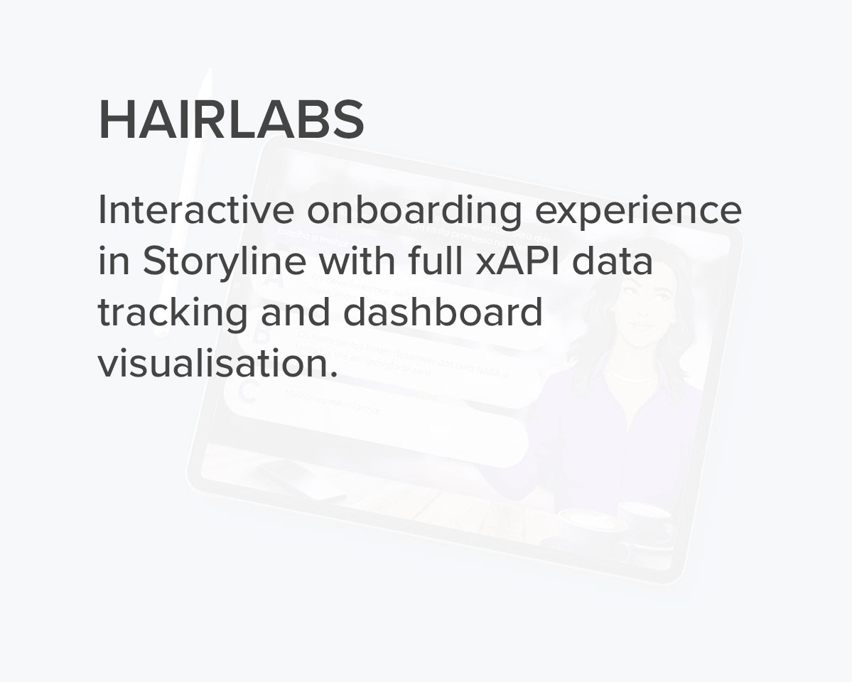 Additionally, I built a separate Storyline dashboard for data visualisation, which can still be hosted in the client’s LMS.